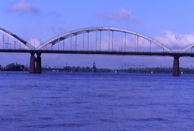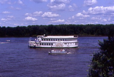 Most surviving riverboats have become floating casinos, such as this one in Rock Island. We passed the Island of Rock Island with the Arsenal and a Confederate Cemetery holding over 8,000 souls then went under the Memorial Bridge carrying Interstate 74 over the river. Kathy Hall was my seatmate, and an excellent guide, who was travelling with three other very interesting and fantastic lady friends. We steamed through Bettendorf, Iowa then rolled by the huge Alcoa Aluminium Plant and entered Riverdale with the town located on the hill. The Bettendorf/Riverdale area used to be the Onion Capital of the World.