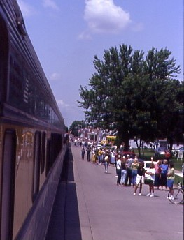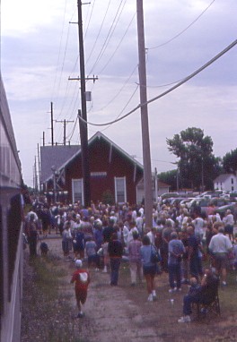 The steam engine was cut off from the train and the Amtrak locomotive then pulled the train to the unloading area, where our excursion ended and what a welcome the people of Rock Island gave us!