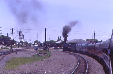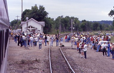 Milwaukee Road 261 reversed up the mainline, passed the former Rock Island depot in the middle of a huge wye with a sea of people all waiting for us. Once the switch was thrown, the train pulled up to the depot on the Rock Island mainline to be serviced and watered.