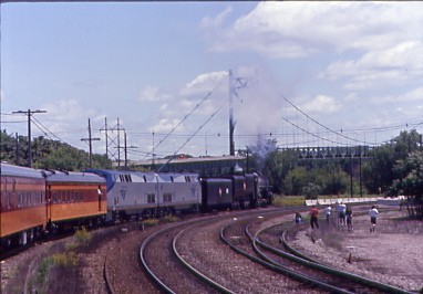 I went to Gate B and was greeted by Joe Harper, the videographer from Washington State who was chasing the rare mileage trips in Idaho and Montana last month. Just after 10:30 AM, Milwaukee Road 4-8-4 261 reversed into Track 29 and I was at the door for the press event which started he Grand Excursion of 2004. The original Grand Excursion of 1854 was a celebration by the Rock Island Railroad which comprised a passenger train from Chicago to Rock Island with the 13th President of the United States, Millard Fillmore, aboard. Once in Rock Island, they boarded a fleet of steamboats for the trip up the Mississippi River to St. Paul and on to the Falls of St. Anthony in Minneapolis. The Grand Excursion of 2004 was a year-long event celebrating and commemorating the historic Grand Excursion of 1854.