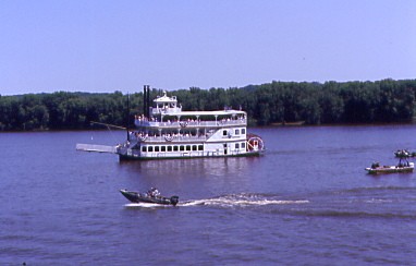 A flotilla of small boats had to wait for us to move before they could pace us into Dubuque, including the Anson Northrup from Minnesota.
