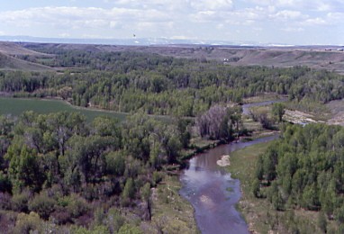 Judith River, named in 1805 by Lieutentant Clark of Lewis and Clark in honour of Miss Judith Hancock of Faircastle, Virginia, who later became his wife. The mouth of the river, where it flows into the Missouri River about 35 miles to the north, has been used as a location for many events from a May 1805 camp for Lewis and Clark to several Indian treaty meetings, to the site for the first military fort in Montana. The river starts to the southwest in the Lewis and CLark National Forest area of the Little Belt Mountains, which are part of the Belt Mountains, named for an unusual rock formation in these mountains.