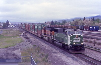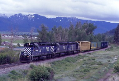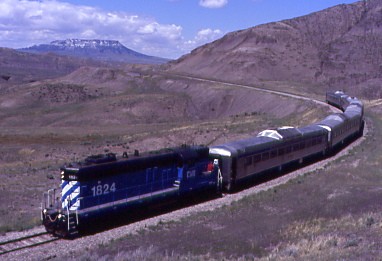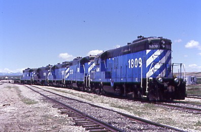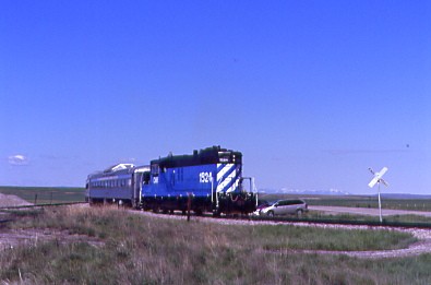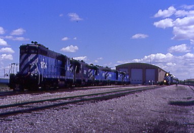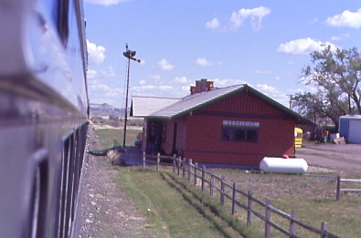 Denton, MP 95.6, is the headquarters of Central Montana Rail with its shops, from which they brought out the rest of their locomotive fleet.