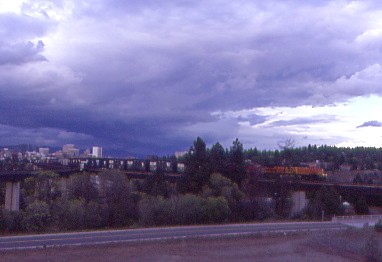 Staying on US 95 to Athol, I found a shortcut to Rathdrum and came upon a BNSF train in the siding in Ramsey then stopped for lunch at the A&W and caught the same train blasting through Rathdrum. I took Idaho 41 to Interstate 90, taking it out to almost the airport exit to the Holiday Inn in Spokane, where I would be spending the night then used their business center before filling the car with petrol for the last time. Back at the hotel, I relaxed the day away until after dinner at the hotel's Peppers Restaurant.