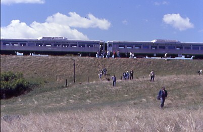 Looking back at Geraldine from the end of track. Half of our group immediately boarded one of the buses to leave right away but instead of leaving, the bus driver just talked incessantly. Once on the road, he continued to talk overt the public address system and made several bad jokes, including one which insulted all of us from California and Oregon. Some Frank Zappa music helped me pass the time and we returned to the cars at Kingston Junction at at 6:00 PM.