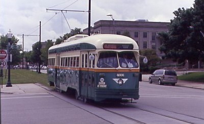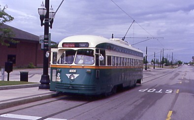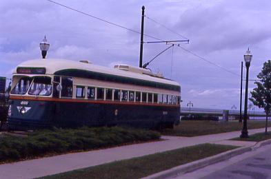 Kenosha Streetcar Line PCC car 4609 2000-present, ex. Vintage Electric Streetcar Company 4609 1996-2000, exx. Toronto Transportation Commission 4609 1990-1996, nee Toronto Transportation Commission 4526 1951-1990 built by St. Louis Car Company in 1951. It is painted in Pittsburgh Railways livery.