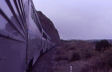 We arrived early at Raton which allowed for a picture of the unique station built in 1904 and time for a visit inside. Music for this late morning was Aerosmith's "A Little South of Sanity". On the way to Las Vegas, as I felt as though I were a "High Plains Drifter" going south with the snow-capped mountains to the west, a very relaxing situation to be enjoyed. Later by Starvation Peak, I was listening to Blue Oyster Cult's "Some Enchanted Evening" and just sat back as the train took the "S" curves and crossed the Pecos River before climbing Glorieta Pass and starting down Apache Canyon.