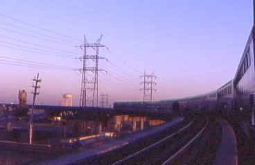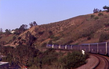 4/25/2004 I awoke at 4:35 AM and we had just left Barstow then waited until 5:05 AM for the dining car to open for French Toast and sausage, which was the call of the morning. Back in my made-up room, I enjoyed a pre-dawn trip down a very busy Cajon Pass with BNSF putting on quite a show. We departed San Bernardino a little over thirty minutes late and proceeded to Riverside then from there, we went to Corona and just west of the West Corona Metrolink station, I passed my 800,000th rail mile. It was a quiet celebration as I still had a couple of pictures yet to take before we arrived in Los Angeles.