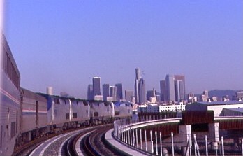 Crossing the Redondo flyover across the Los Angeles River and the Alameda Corridor with downtown Los Angeles in the background. We arrived at LAUPT at 7:58 AM, 17 minutes early.