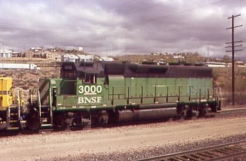 BNSF GP40 3000, ex. BNSF 3500, exx. Burlington Northern 3006, nee Chicago, Burlington and Quincy 176 built by Electro-Motive Division in 1966, was switching the yard leads in Gallup. I then went to the lounge car to get some snacks before listening to some of Jeff Beck's Wired CD.