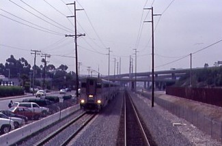 Once on the move againm we rolled into San Juan Capistrano then ran down to Capo Beach and started our surf running through San Clemente, crossing into San Diego County and climbing the bluff to San Onofre, where the siding was being extended south. The train made a quick run to Oceanside and we entered on the mainline since northbound Pacific Surfliner 573 was in the siding doing his station work on the oceanside platform, then contined south, passing the new siding between CP Swami and CP Cardiff before arriving in the trench at Solana Beach. We passed through Del Mar and travelled across Sorrento Valley before climbing the Miramar Grade to CP Cumbres. Back on double track, we first met a short BNSF freight, followed by Pacific Surfliner 775, then with no further delays, we continued the rest of the way to America's finest City of San Diego.