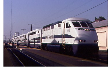 What does the rose and the Metrolink train arriving in Santa Ana have in common? Well, Metrolink ran New Year's Day trains from San Bernardino and Oceanside again in 2004, but this year passengers could use the new Pasadena Gold Line to reach the Rose Parade and/or the Rose Bowl. I decided to ride this year's train, not to go to Pasadena but to be able to ride to Los Angeles to catch Amtrak's Pacific Surfliner 761, the 6:55 AM departure to Goleta. I would take this train to Carpinteria and lay over there until Pacific Surfliner 774 from San Luis Obispo would return me to Santa Ana.
