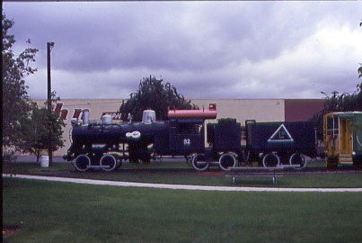 Potlatch Forests three truck Heisler 92, nee Ohio Match Company 1 built by the Heisler Locomotive Works in 1924. At some point it was bought by Potlatch in Headquarters, Idaho then in 1959, moved to Lewiston and in 1963, was donated to the City. It is on display in Locomotive Park.