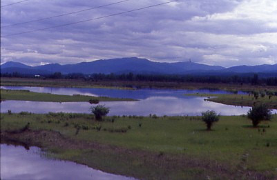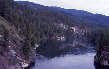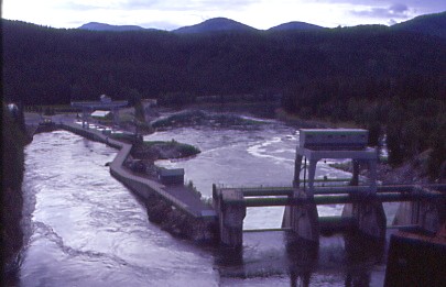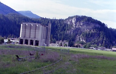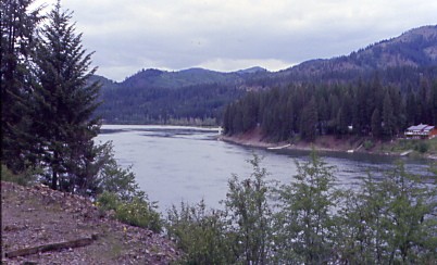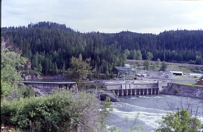 Box Canyon Dam at MP 982. This was built in 1952-1955 and is today owned and operated by the Pend Oreille Public Utility District, providing electrical power at rates much lower than found in most of the rest of Washington. We have followed the reservoir that is backed behind the dam for our entire trip since it extends more than 55 miles south to the Albeni Falls Dam east of Newport.