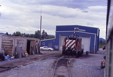 Pend Oreille Valley Railroad GP7 110, ex. Burlington Northern 1629, nee Northern Pacific 555 built by Electro-Motive Division in 1952 outside the shops in Usk.