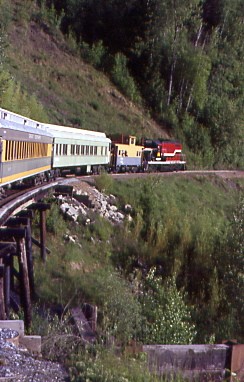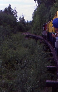 On another trestle, which is 475 feet long and 156 feet high. I took this photograph before the train was reversed off the bridge and slowly pulled forward for an exclusive photo runby for just three people. The Lions Club has a "no one off the train" policy between stations for safety reasons.