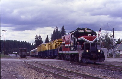 We stopped at the north end of the railroad, MP 104.7, only ten miles from Canada and I had almost crossed Washington from the south to north today. The locomotive ran around the train before we started the return journey.