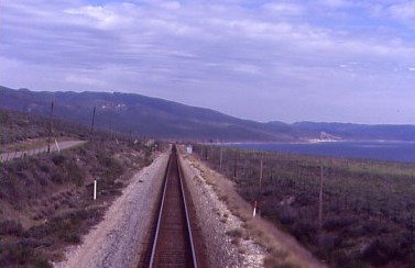 At Andesite, Mount Shasta as seen from the rear door. We crossed over Grass Lake Summit and made our way to Klamath Falls. This morning, Union Pacific had all the freights in the siding out of our way and we arrived at 10:02 AM, where the connecting passengers for the Empire Builder would be bussed to their train, then departed at 10:12 AM {8:25 AM}.