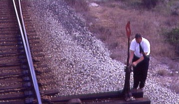 At the west end of the siding, our assistant conductor Todd threw the switch so we could continue.