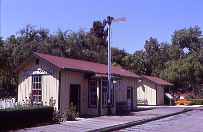 A replica of the Santa Fe Springs station and hand car/tool shed. From there, we made our way to Industry and to a location to photograph the westbound Santa Fe 3751. Other than one railfan who drove there to check out the location, we were only visited by a security guard who kept his distance.