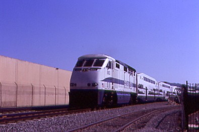 We arrived with double greens on both the Metrolink line west and on Union Pacific's Sunset Line going east. A Union Pacific freight was sitting in the siding and we tried two grade crossings before settling on a cul-de-sac. A Union Pacific foreman asked us what we were doing and we told him of Santa Fe 3751's pending arrival and he told us he had seen Union Pacific 3985 in Pine Bluff a couple of weeks ago. A back hoe operator then pulled up, asking what we were doing there and once he found out, he was glad we were out to witness this event.
