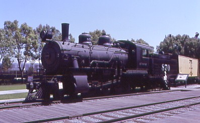 In 1940, the Santa Fe sold three 2-8-0s (769, 870 and 874) to the Albuquerque & Los Cerrillos Coal Company, which operated a coal mine in Madrid, New Mexico, connected by a branch line from the AT&SF at Waldo. As demand for coal fell off in the 1950's, however, the mine was shut and the branch line abandoned in 1959. 769 and 870 were left at Madrid sitting amid the remains of the mine operation. In 1989, the City of Santa Fe Springs acquired 870 and it was was restored to its post-1924 Santa Fe appearance and moved to the current location in Heritage Park at 12100 Mora Drive.