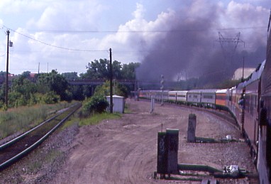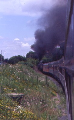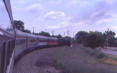 Milwaukee Road 261 then stormed up Westminster Hill. With Doyle sitting with us, we had great steam railroad conversation all the way back to Minneapolis Junction, where we were wyed once again so that 261 could be cut off and put into its fenced area of the shops. The Amtrak locomotives then pushed the train to a stop at the detraining area and when the train stopped, the Milwaukee Road 261 trips for 2004 were finished. I said goodbye to Doyle, Skip and the rest, especially the crew of 261, for the excellent trips. Special thanks to North Star Rail, the Friends of Milwaukee Road 261, Canadian Pacific Railway, BNSF, Iowa, Chicago and Eastern and Iowa Interstate for everything they did to make this set of excursions a success.