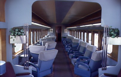 Designed by famed industrial designer Brooks Stevens and built by the Milwaukee Road in 1948 in its own Milwaukee Shops for service on the Twin Cities Hiawathas, the "Cedar Rapids" is one of only four Skytop observation parlour lounges ever built and the only one that can still ride the rails today. "The Finishing touch to a perfect train" is how the Milwaukee Road described its Skytop observation cars. With one drawing room-kitchen, this car is ideal for a small group. With 24 big comfortable, reclining, rotating parlor chairs, which make for the smoothest ride you will ever have. Additional seating for 12 more in the Skytop Solarium, will top of your journey just right, with a full view of the tracks rolling out from behind and the sky above. This car also retains all its original woodwork, upholstery and wool carpeting throughout.