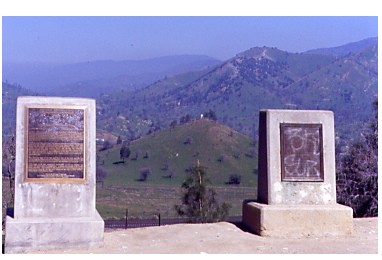 The recently-installed National Historic Civil Engineering landmark plaque and California Historical Landmark plaque at the overlook to the Tehachapi Loop.