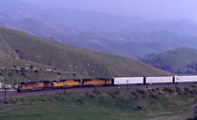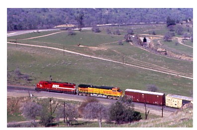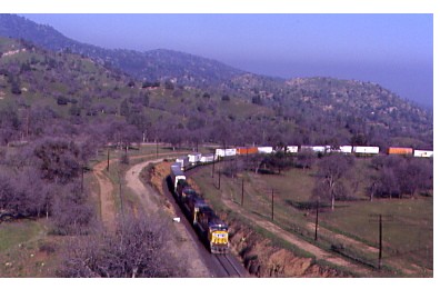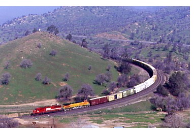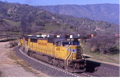Union Pacific 4019 climbed the loop with a SOO Line helper on the rear.