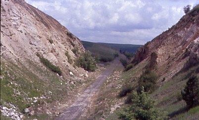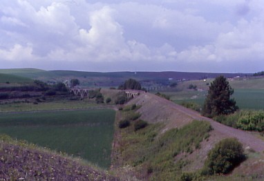 The Milwaukee Road grade looking east from the US 195 bridge at Rosalia.