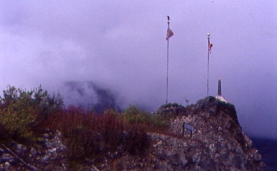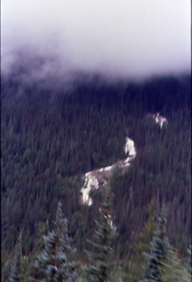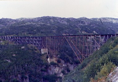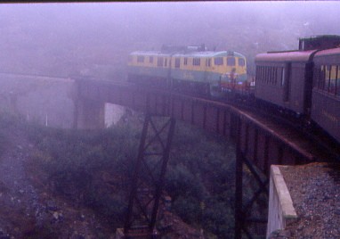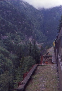 Maintaining our ascent, we entered the clouds then in fog, passed the Steel Bridge constructed in 1901, which was the tallest cantilever bridge in the world at that time and was used up to 1964. It was impossible for me to get a picture of this bridge going north.