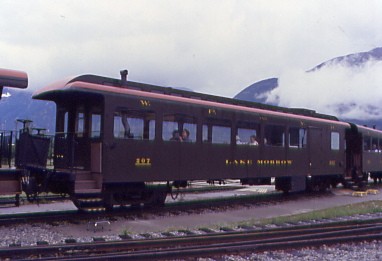 At the other end of the station was White Pass and Yukon rotary snow plough 1 built by Cooke Locomotive Works in Paterson, New Jersey in 1899. I walked over to my train to Lake Bennett, which consisted of DL535's 100 and 92, flat car 479, combine 211, coaches 286 "Lake Kusawa", 280 "Lake Dease", 207 "Lake Morrow" and 282 "Lake Klukshu". I rode in "Lake Morrow".