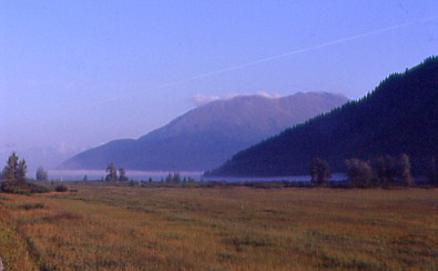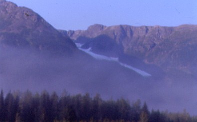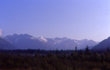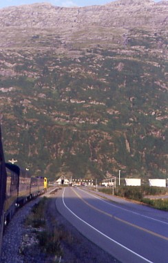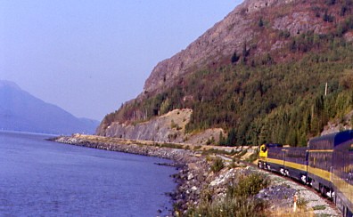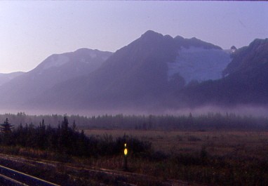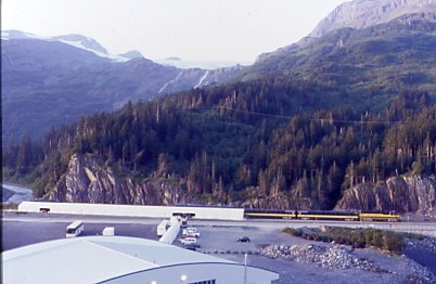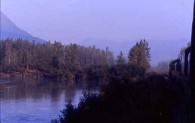 Off to the north is Twenty Mile Glacier before the train crossed Twenty Mile River.