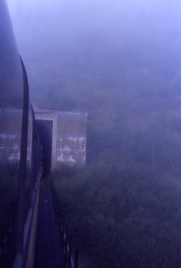 We exited the tunnel into the fog as we passed Bear Valley siding.