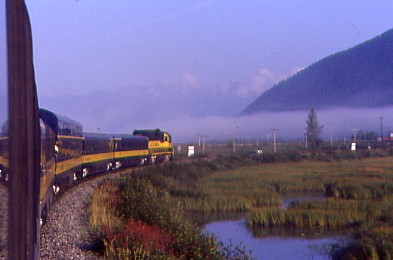 At Potter we met the Glacier Discovery train holding the main with Conductor Steve aboard.