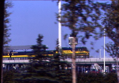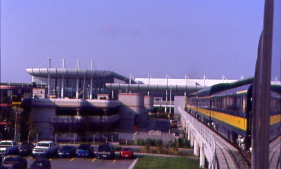 One last view of the fantastic Alaska Railroad Grandview Cruise train as seen from the bus which took everyone who did not have an immediate flight to the Hospitality Center at the Anchorage convention centre to wait for hotels or later flights.