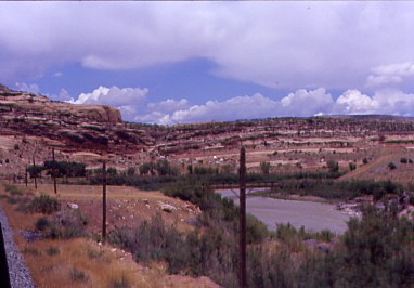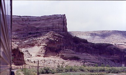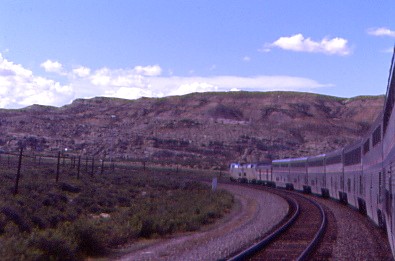 I asked our conductor, "Why did we not run across Wyoming as scheduled this morning?" She said "The Union Pacific delayed their work by one day so tomorrow the trains would run that way!" I then said, "With no passengers on or off today, this has to be an easy day of work." She just smiled. We departed Helper at 11:02 AM {7:15 AM} and descended into the Utah Desert with the Book Cliffs to the north. I napped to Green River before enjoying the desert views and went to the dining car just for a delicious chocolate cake as I was not hungry. We stopped at Cisco to wait for track workers to clear the mainline and I was sure they were not expecting us today as we were scheduled to be in Wyoming.