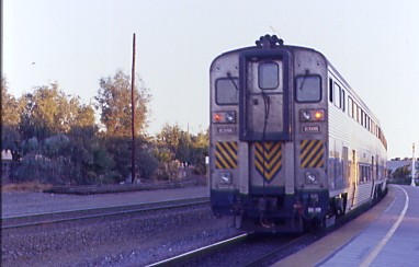 Thruway Bus to Bakersfield 7/21/2004The bus arrived at Santa Ana on time and I took the front seat as the other four passengers boarded and we made our way via California Highway 57 to Fullerton, where Carl boarded and sat at the back of the bus. I dozed to Los Angeles, where the bus filled up a little more but I retained my two seats. This bus was extremely cold and made it hard to sleep since I was in shorts knowing the valley temperatures of the morning. I asked the driver to put the heat on but he did not believe that it was cold. We stopped at Glendale, Van Nuys and Saugus but I still was cold and could not sleep. Finally, someone else complained and the driver adjusted the temperature. I was extremely glad to step off that bus into the much warmer morning air of Bakersfield and the train crew opened the train immediately, which was a great gesture on their part to make our transfer easy.