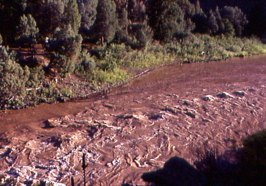 The Colorado River had turned a chocolate milk colour, meaning there had been flash flooding somewhere in the mountains. After dinner, I found the conductor who said the dining car had turned off their public address system and that he had made three announcements about the freight train outside our window that had broken in two and had 32 cars overhanging onto the mainline.
