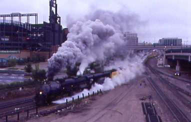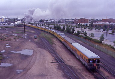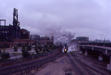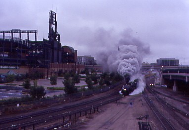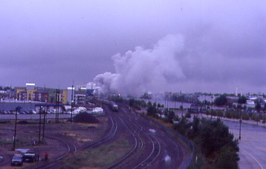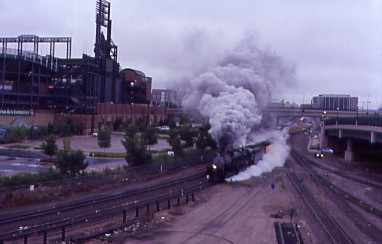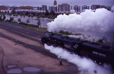 The phone rang at 6:10 AM with Carl and I obeying the reason for its ringing. We walked out onto the Park West Avenue bridge to wait for the departure of Union Pacific 4-6-6-4 3985, the world's largest operating steam engine, bound for Cheyenne at 7:00 AM on a dark and damp overcast morning. Right on schedule, 3985 departed Denver with about fifty railfans on the bridge taking pictures and video.