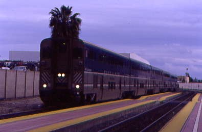 After working another tough but interesting day (I could write a book about this year at work) at McFadden Intermediate, I drove home a free man to pack and get ready for this rail adventure of which I had been dreaming. My mother drove me to the Santa Ana station and after Metrolink 686 to Irvine arrived, Pacific Surfliner 583 came in in the now-normal push mode. Leading this train was Surfliner cab car 6951, Pacific Business Class 6800 (used as a coach), coach 6410 and 6405, café/coach 6305, Pacific Business Class 6851 "Balboa Park" with F59PHI 460. We departed north but stopped at CP Lincoln to wait for Pacific Surfliner 582 and I enjoyed watching the bumper-to-bumper traffic on northbound Interstate 5.