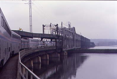 The train crossed the Missouri River on a three-span through truss single-track bridge which carries the BNSF Marceline Subdivision over the Missouri River. It is the only single-track segment of the subdivision. The original 1887–88 bridge was a three-span Whipple through truss and was later reconstructed with Parker through truss spans.