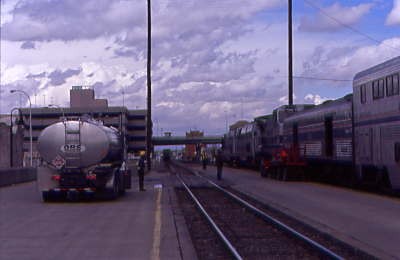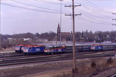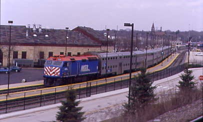 At Aurora, a Metra train waited for its departure back to Chicago.
