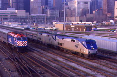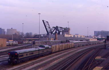 I checked the status of the Cardinal and realized that I could photograph it arriving if I hurried to Roosevelt Road, but did not make it all the way to the bridge before it reversed in. The private car "North Star" was on the rear and little did I know that I would see that car on another train in a few days. A Metra train arrived and departed.