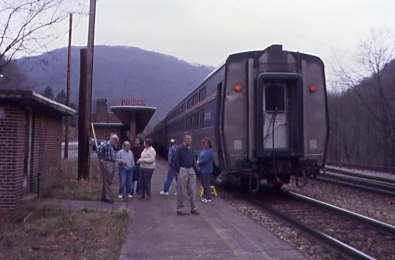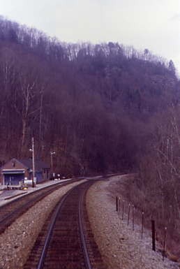 The Charleston station is beneath the highway on a ramp. Now for the trip though the New River Gorge and I wished that Mrs. Angle, that most wonderful science teacher I work with at McFadden Intermediate, could someday see the Gorge. We made our stop at Montgomery, running a mere ten minutes late.