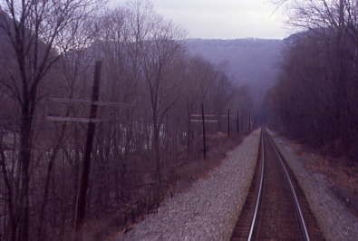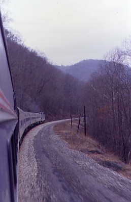 An Alco road switcher of unknown origin in the Huntington Railroad Museum equipment collection as we departed town. The Cardinal passed the large yards and shops of CSX here and shortly after, we left the Ohio River behind and started climbing the grade that takes one over the hill to the New River. Since it was Easter, I enjoyed a Bordeaux easter egg my mother gave to me the day I left. You have heard of "Do not open until Christmas!" and I did the Easter version of that as the train ascended the foothills of the Appalachian Mountains.