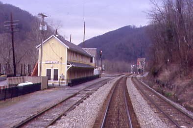Chesapeake and Ohio Thurmond station built in 1904, a flag stop on Amtrak's Cardinal. During the first two decades of the 1900's, Thurmond was a classic boomtown. With the huge amounts of coal brought in from area mines, it had the largest revenue on the Chesapeake & Ohio Railway. Having many coal barons among its patrons, Thurmond's banks were the richest in the state. Fifteen passenger trains a day came through town and its depot served as many as 95,000 passengers a year. The town's stores and saloons did a remarkable business and its hotels and boarding houses were constantly overflowing.