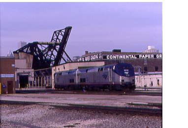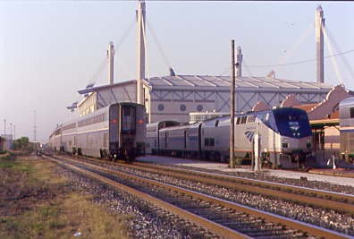 A delay into Chicago Union Station allowed for a picture of Chicago. We then arrived at Union Station and I went the lounge for some phone calls then upstairs to Gold Coast for a pair a Char Dogs. Back in the lounge, I enjoyed six songs of Alice Cooper and when all the Empire Builder passengers departed, I moved in front of the wide-screen television to watch CNN. At 2:55 PM, they called all the 21, 321 and 421 passengers to go board their sections of the Texas Eagle. At the front door of the lounge, it became a joke when I added 921, 1321 and 2121 before we were led out to our waiting train.