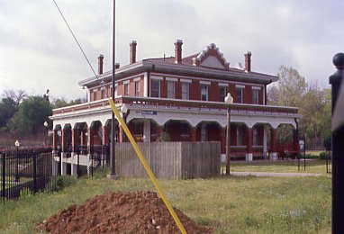 The exterior has remained essentially the same since its construction. The striking red brick building is outlined in white and features a projecting center bay with a prominent porch, giving the station a homey-feel. The interior has been significantly altered over the years to meet modern railroad needs. During a major rehabilitation in 1999, whitewash was removed and the original red brick restored. Former Texas and Pacific 2-8-2 400 and a Union Pacific caboose stand on the surrounding grounds. From the depot's upper level balcony, visitors can survey the town, including the Harrison County Courthouse (1901) and the historic Ginocchio Hotel (1896).